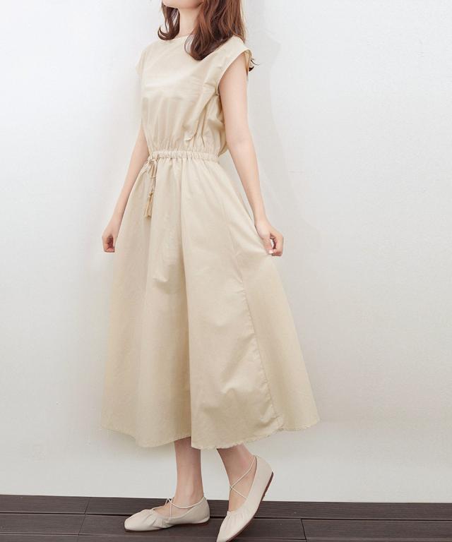 スッキリと着こなせて着やせするフレンチスリーブタイプの綿麻ワンピース
