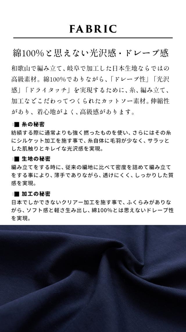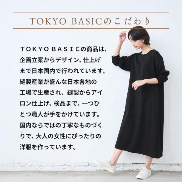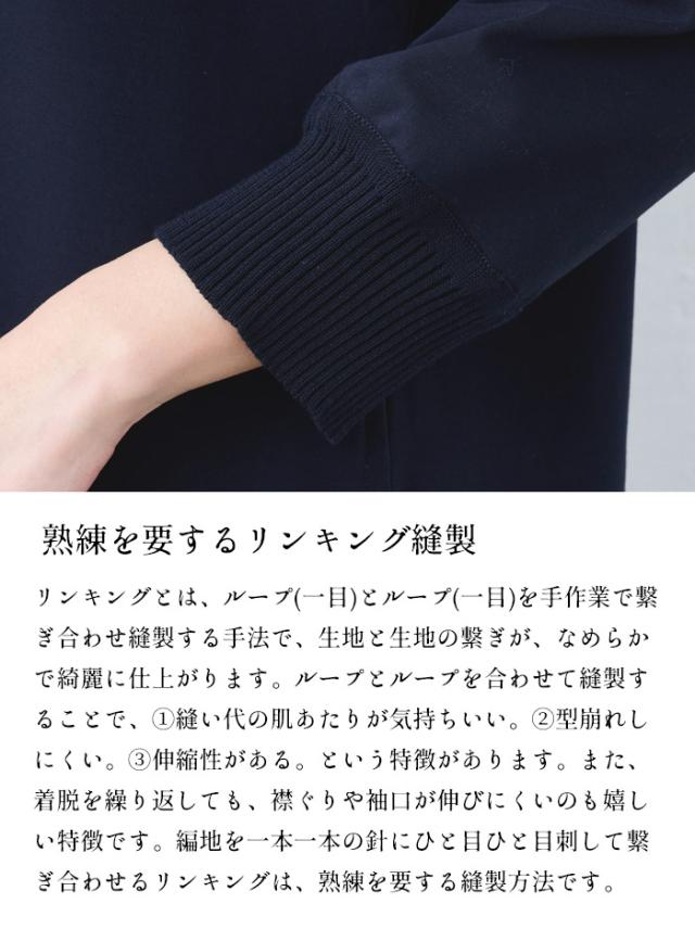 特徴 コットン100%とは思えない、上品な光沢感と、美しいドレープが特徴の強撚コットンをたっっぷりと使用した、袖口リブ使いワンピース。丈が少し長めなのも嬉しいポイント。なめらかで綺麗なリンキング縫製で、洗練された雰囲気を作り出してくれる、ラフに着飾れるワンピースです。