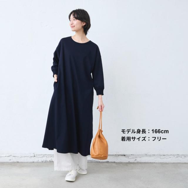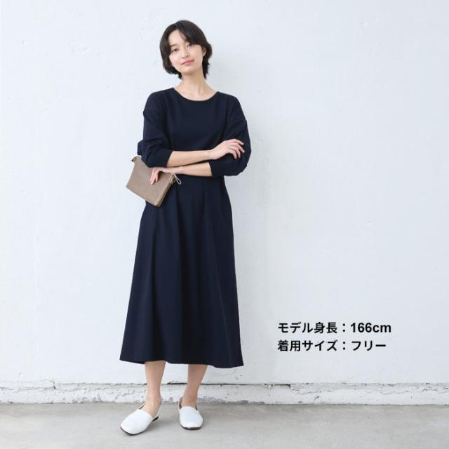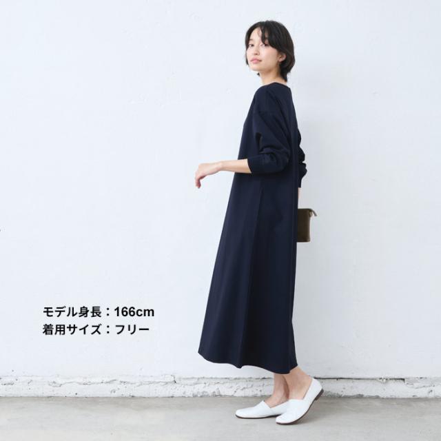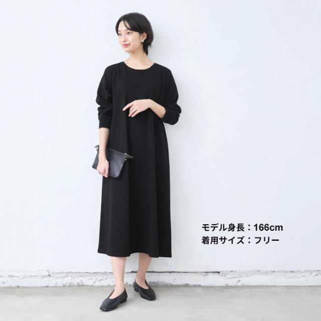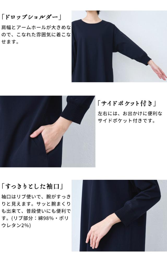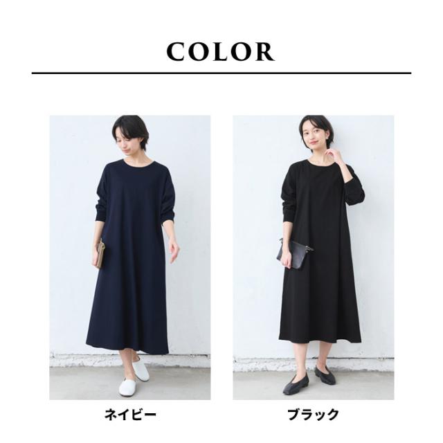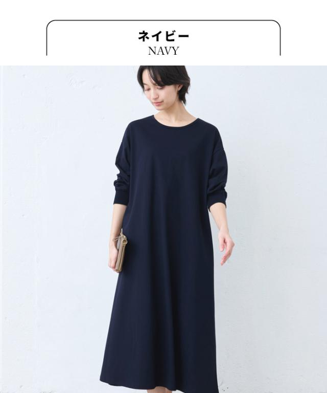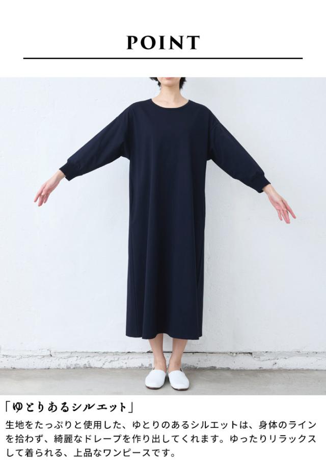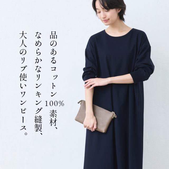 強撚 コットン100% リブ使い ワンピース 日本製 / ワンピ レディース 無地 綿 40代 50代 60代 女性 綿100% ロングワンピース 長袖 きれいめ ゆったり 春 夏 秋 綿100% 春物 春服 顔合わせ オケージョン お呼ばれ