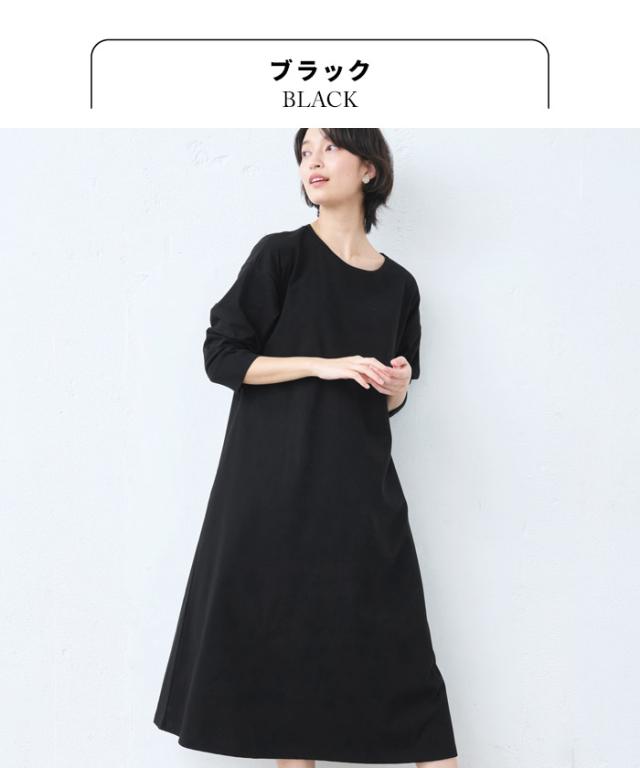 レディース 無地 綿 強撚 コットン100% リブ使い ワンピース 40代 50代 60代 女性 綿100% ワンピ 長袖ワンピース きれいめワンピース カジュアル 綿100 天然素材 ナチュラル 綿 おしゃれ かわいい 大きめ リブ 結婚式 二次会 入学式 卒業式 ブラック ネイビー 黒 紺