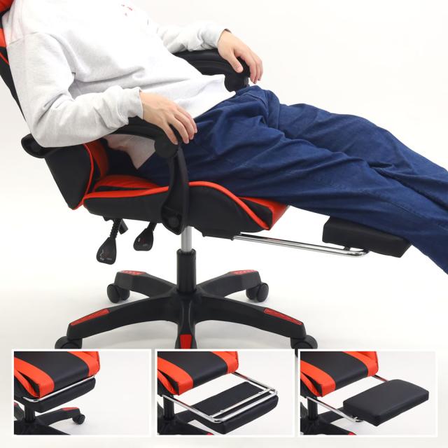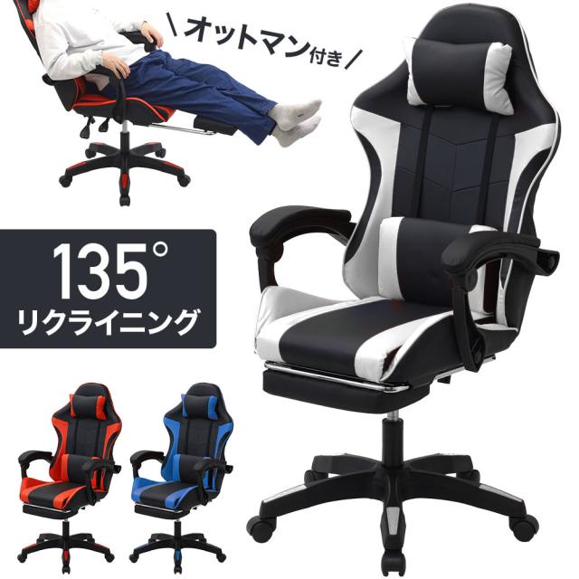 ゲーミングチェア オットマン リクライニング 白 赤 青 メッシュ パソコンチェア デスクチェア リクライニングチェア オフィスチェア おしゃれ 楽 無段階 在宅 ゲーミングチェアー レッド ブルー ホワイト 椅子 チェア 事務椅子 パソコン 仕事用