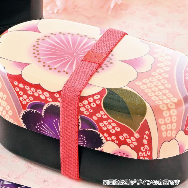 目を引く大振りの花が印象的な蓋には、本物の布地をそのまま利用しています。そのため一つずつ表情が違い、自分だけの特別なお弁当箱としてお使いいただけます。