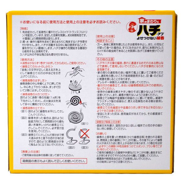 庭先や玄関などで焚くことで、水やエサを求めて飛んでくるハチを生活スペースに寄せ付けません。