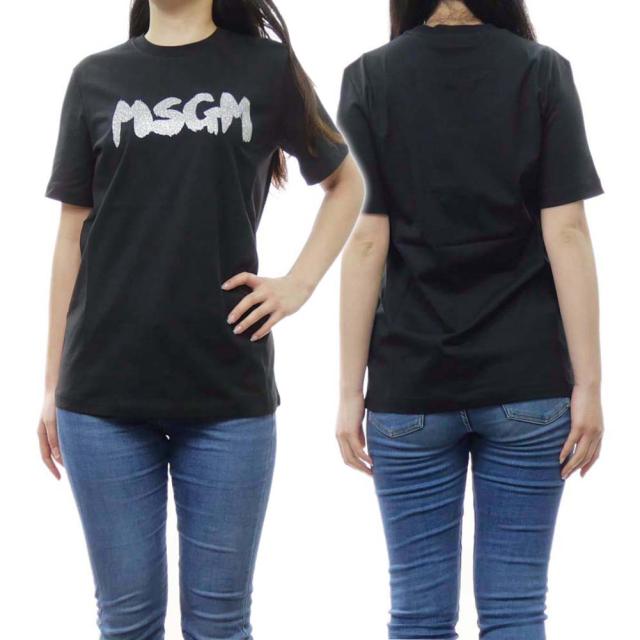 旧作お買い得セール! MSGM エムエスジーエム Tシャツ レディース 半袖 クルーネック コットン 綿100% 3641MDM138 247002 ブラック