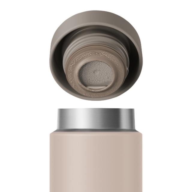 蓋はしっかりと閉まるスクリュータイプで持ち運びも安心です。蓋を開ければすぐに水分補給でき、口当たりの良い飲み口はどの向きでも飲みやすいデザインです。