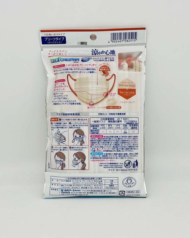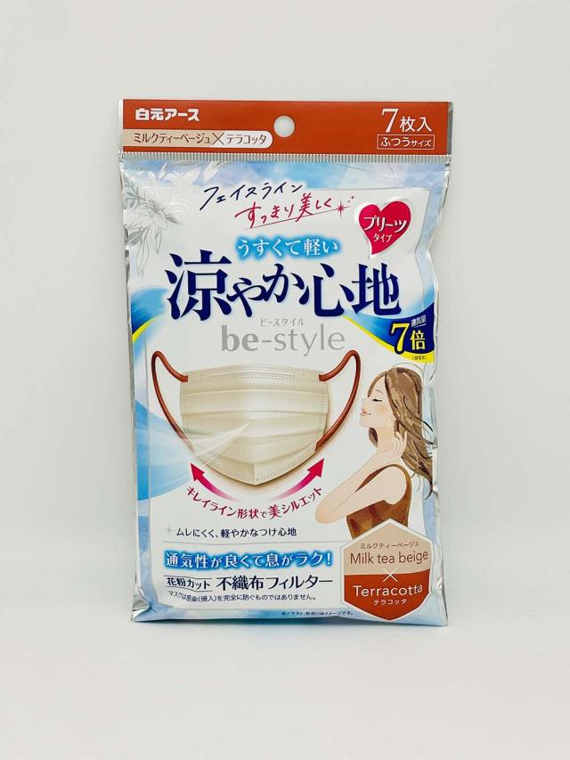 【2袋セット】白元アース ビースタイル プリーツタイプ 涼やか心地 ミルクティーベージュ×テラコッタ 7枚入り 女性用マスク 送料無料