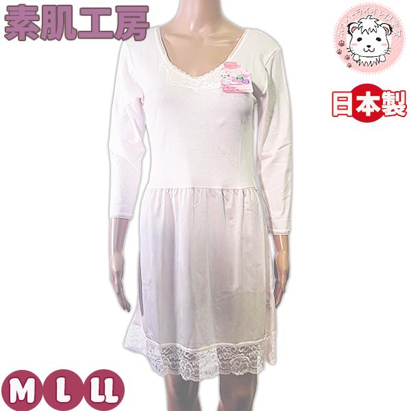 清光ランジェリー 素肌工房 8分袖 切替スリップ シミーズ 1168 M/L/LL | スリップ シュミーズ 長袖 レディース 日本製 透け防止 ランジェリー 八分袖 ペチコート