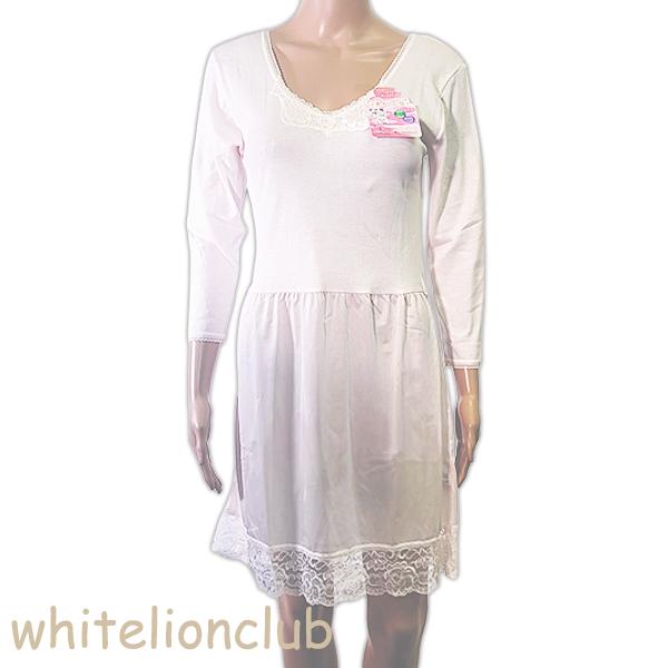 婦人 女性 下着 肌着 インナー 綿100% 袖付きスリップ