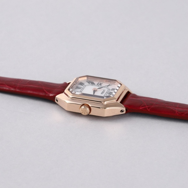 ■ケースサイズ:H26×W21.2×D6.6(mm) ■ラグ幅/ 美錠:10/8(mm) ■ムーブメント仕様:セイコーエプソン株式会社製ソーラークォーツムーブメント ■ケース素材:ステンレス(ピンクゴールドメッキ) ■風防素材:ミネラルガラス ■文字盤色:白蝶貝 ■ベルト素材:本ワニ革 / レッド ■腕周りサイズ:革ベルト約13〜17cm、メタルベルト約13〜17.5cm対応 ■防水性:日常生活防水 ■最終検収組立:日本 ■メーカー保証期間2年 ※天然皮革につき1点ずつ柄が異なりますのでご了承下さい。 ※記載は商品仕様の一部です。仕様説明不足等の理由での返品はできません。特に適合等は必ずご確認ください。