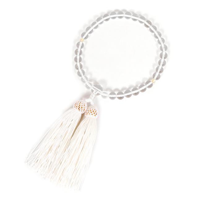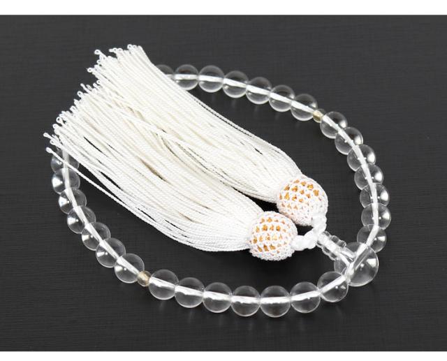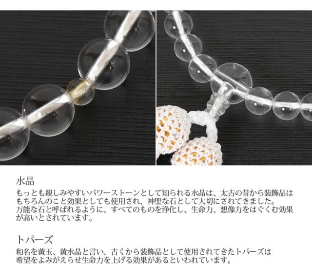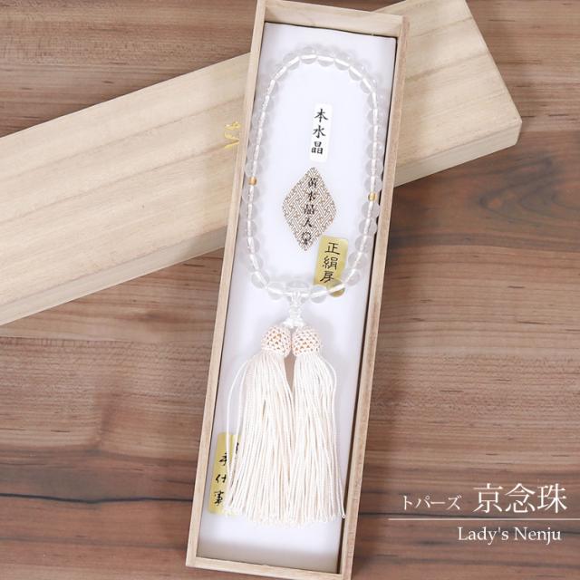 数珠 白 念珠 女物 女性用 水晶 トパーズ入り 念誦 頭房 京念珠 天然石 パワーストーン 葬儀 法事 お墓参り 数珠 珠数 レディース 桐箱入り 正絹房 j1111