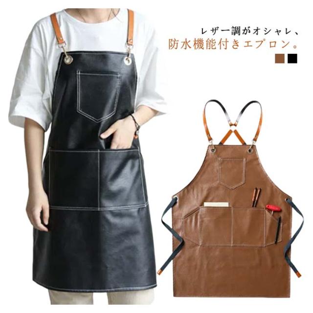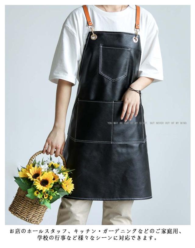 メンズ 防水エプロン エプロン エプロン PUレザー レザー調 保育士 レザーエプロン 業務用 喫茶店 レザー調 カフェ 美容師 キッチン レディース 男女兼用 ポケット付き 作業用 ガーデニング 家庭用