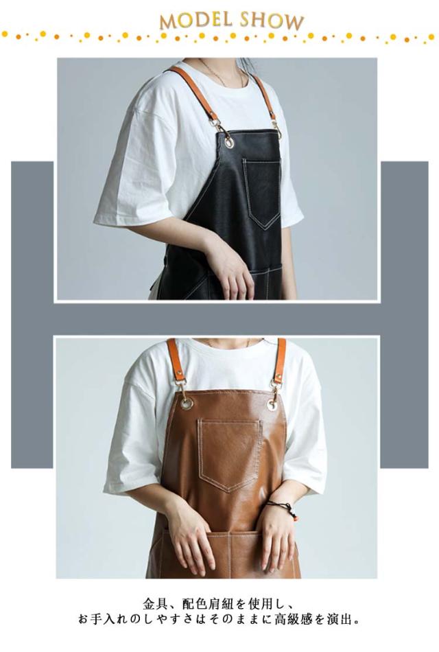 | レザー調がオシャレ、防水機能付きエプロン。 金具、配色肩紐を使用し、お手入れのしやすさはそのままに高級感を演出。 PUレザーを採用し、水、グリース、こぼれ、汚れ、食べ物の汚れから洋服を守ります。 ポケット付き、ペン、スマートフォン(携帯電話)、ハサミ、メモ帳などの実用的なツールを収納することがでいます。 お店のホールスタッフ、キッチン・ガーデニングなどのご家庭用、 学校の行事など様々なシーンに対応できます。 シンプルとおしゃれのデザインで男女兼用年齢性別問わず誰でも使えます。 | |