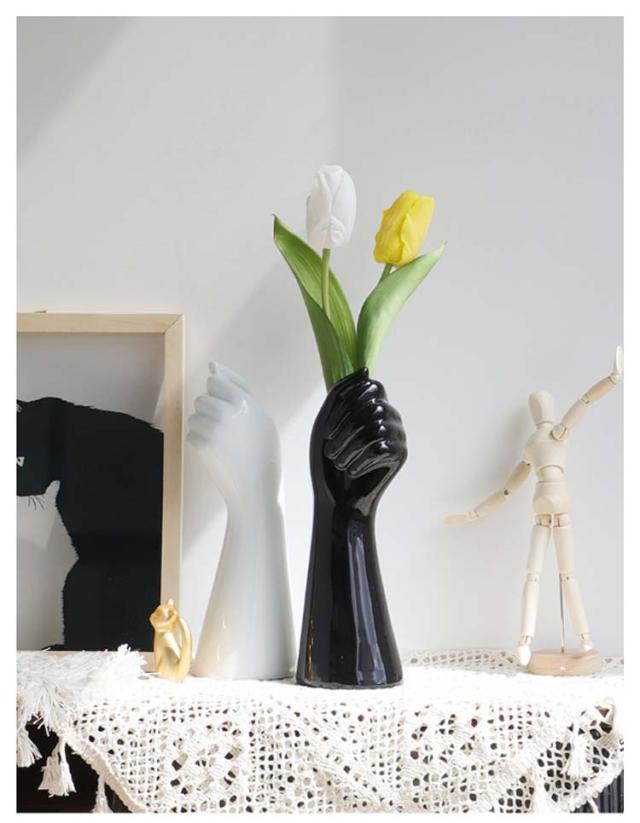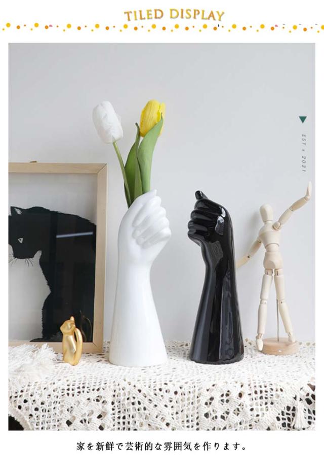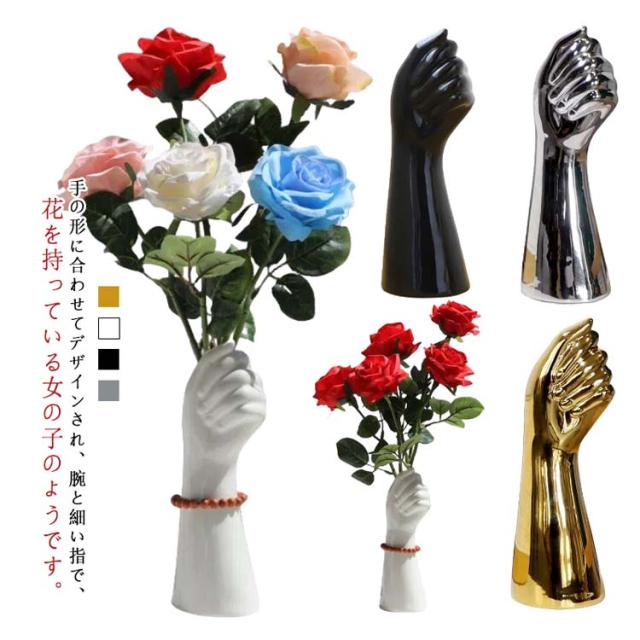 花瓶 フラワーベース 手の形 手の形 花器 北欧 陶器 おしゃれ インテリア 白 セラミック シンプル おしゃれ 生け花 ユニーク 家の装飾 プレゼント ギフト ブラック ホワイト ゴールド