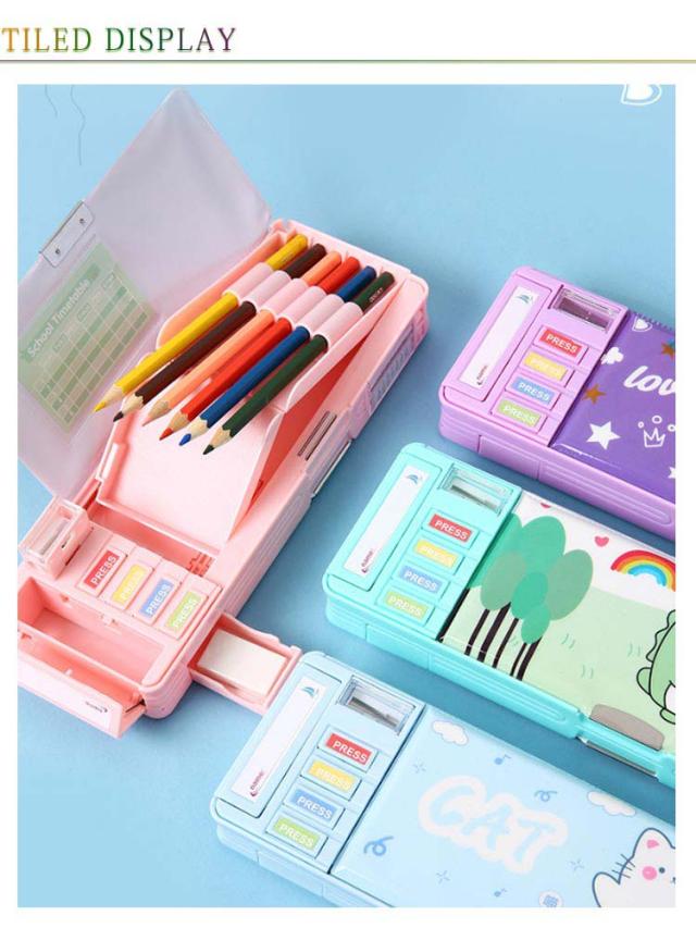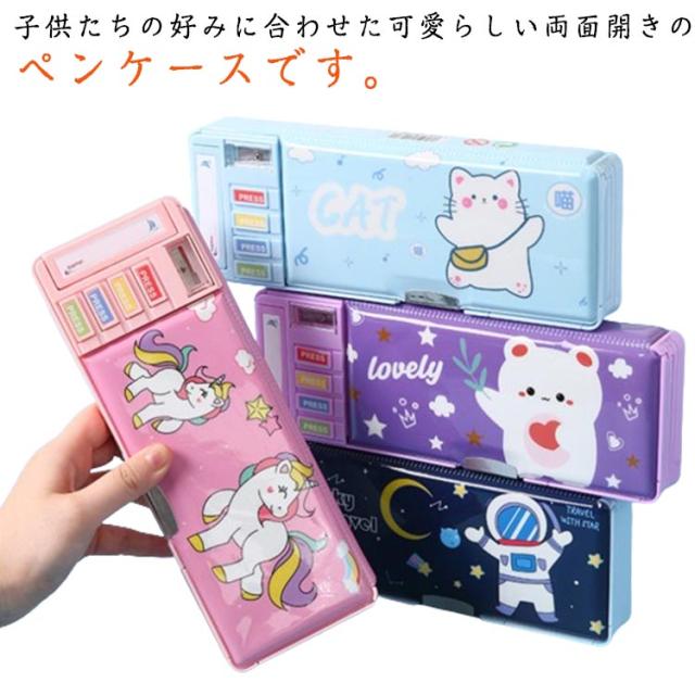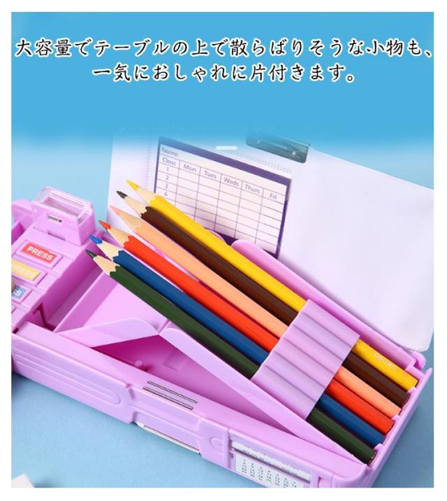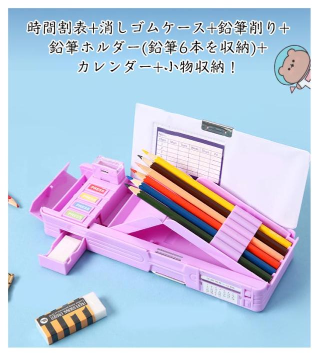 筆箱 両面開き 小学生 小学校 女の子 ペンホルダー 男の子 ペンケース 鉛筆削り 時間割表 カレンダー付き 両面開き 消しゴム入れ 箱型 小物入れ 多機能 お洒落 文房具 可愛い 入学準備 大容量 プレゼント