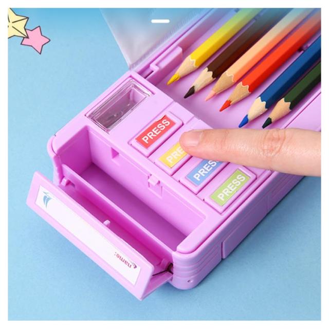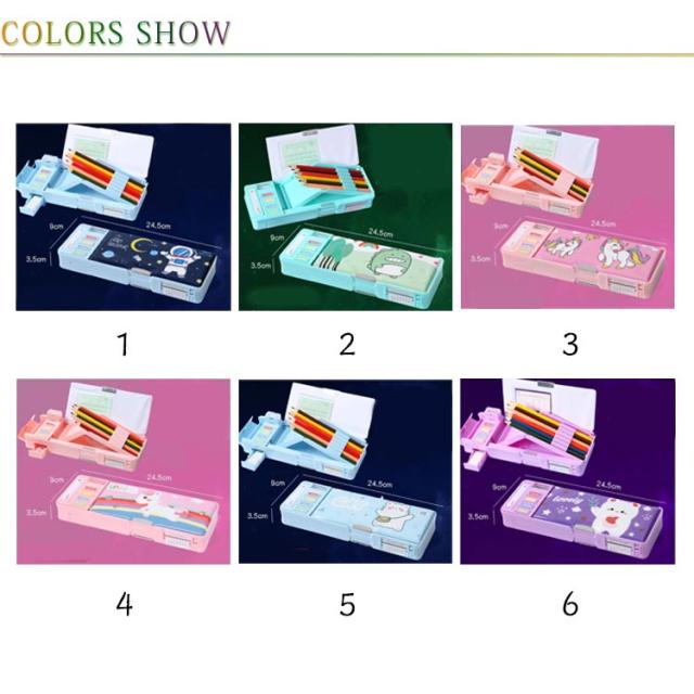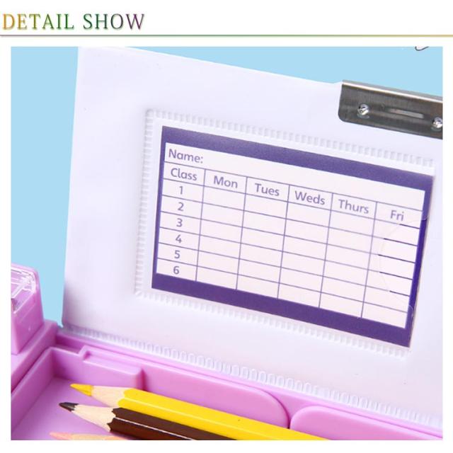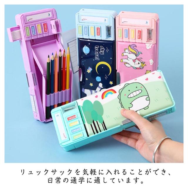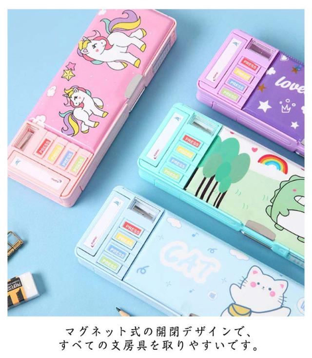 | 子供たちの好みに合わせた可愛らしい両面開きのペンケースです。 時間割表+消しゴムケース+鉛筆削り+鉛筆ホルダー(鉛筆6本を収納)+カレンダー+小物収納! 良質なABS素材から作られ、耐久性にも優れて、長くお使い頂けます。 大容量でテーブルの上で散らばりそうな小物も、一気におしゃれに片付きます。 マグネット式の開閉デザインで、すべての文房具を取りやすいです。 リュックサックを気軽に入れることができ、日常の通学に適しています。 | |