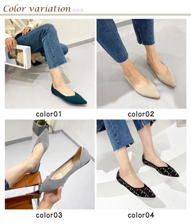 【全16柄】 パンプス 走れる 夏 Vカット 柔らかい 痛くない 春 走れるパンプス ローヒール 履きやすい レディース 秋 脱ぎやすい 軽量 ポインテッドトゥ ニットパンプス 無地 【全16柄】 柄 シンプル お洒落 きれいめ