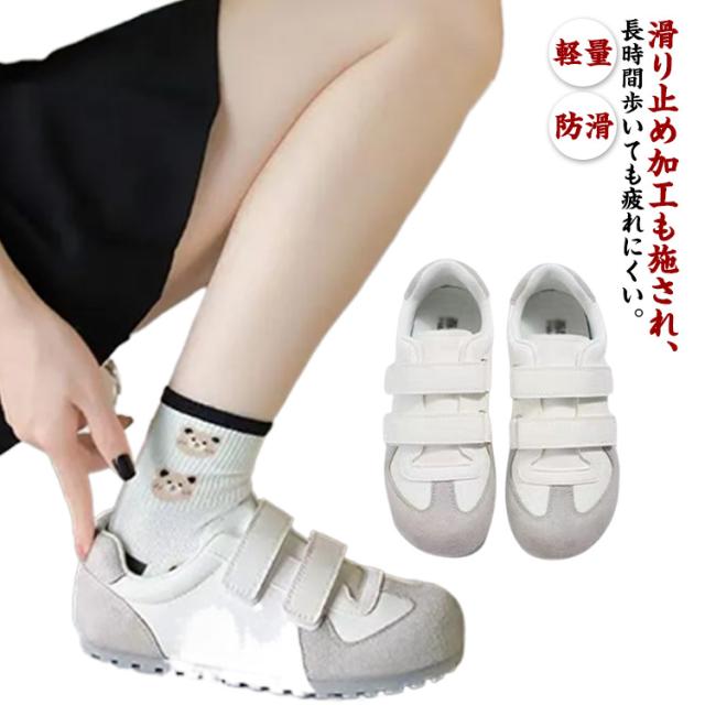 軽量 通学 おしゃ レディース 春 靴 シューズ 夏 白 防滑 マジックテープ スポーツシューズ トレーニング カジュアル 歩きやすい ウオーキングシューズ シンプル 春秋 履きやすい 秋 すべり止め ローカット 通勤 スニーカー お出かけ