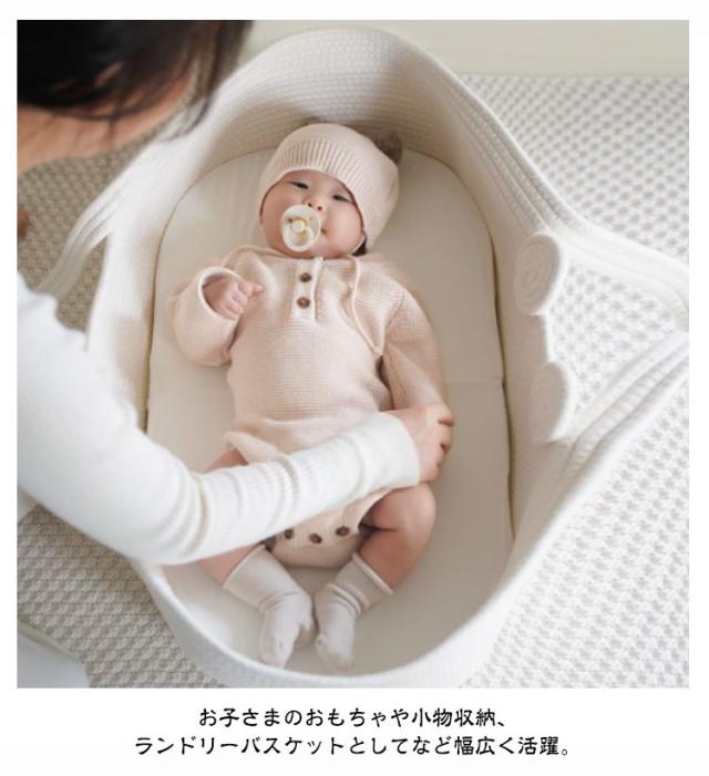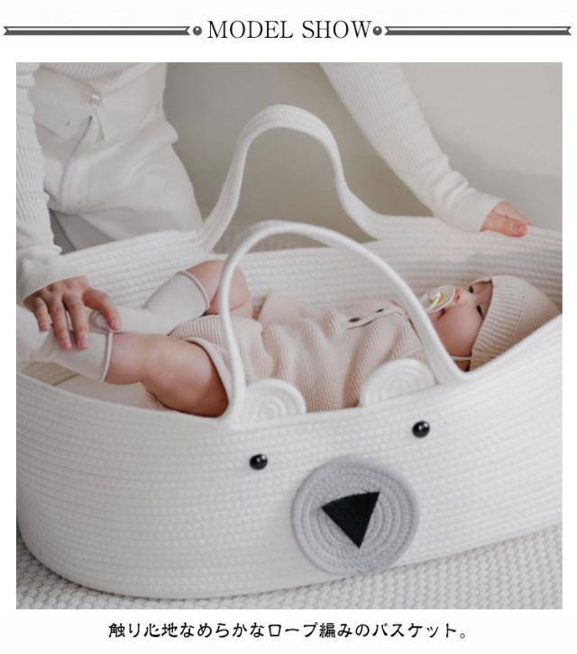 ベビー 持ち運び 添い寝 ベビー ベビーキャリー カゴ 籠 ベビーベッド 折りたたみ ベビーバスケット コンパクト ロープ編み 赤ちゃん お宮参り 退院 外出 出産祝い ギフト シンプル ベビー用品 送料無料 写真