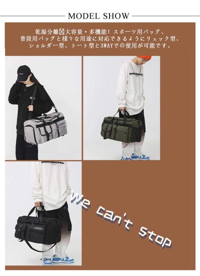 | 乾湿分離・大容量?多機能!スポーツ用バッグ、普段用バッグと様々な用途に対応できるようにリュック型、ショルダー型、トート型と3WAYでの使用が可能です。 生地はオクスフォード生地を採用し、軽い上に通気性が高いです。また水もはじく為、雨の日も安心してご利用頂けます。 大容量の収納可能! 仕事などの普段使いはもちろん、ジムでのトレーニングや部活、合宿、修学旅行などでも活躍します。 | |