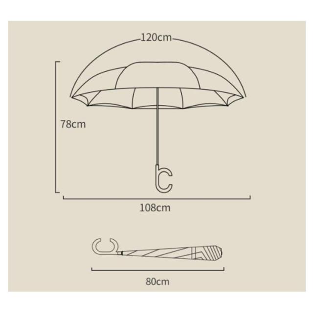 | サイズについての説明 | 展開サイズ:108*78cm/8本骨 収納サイズ:80cm/重さ約570g ※サイズ表の実寸法は商品によって1-2cm程度の誤差がある場合がございます。 |