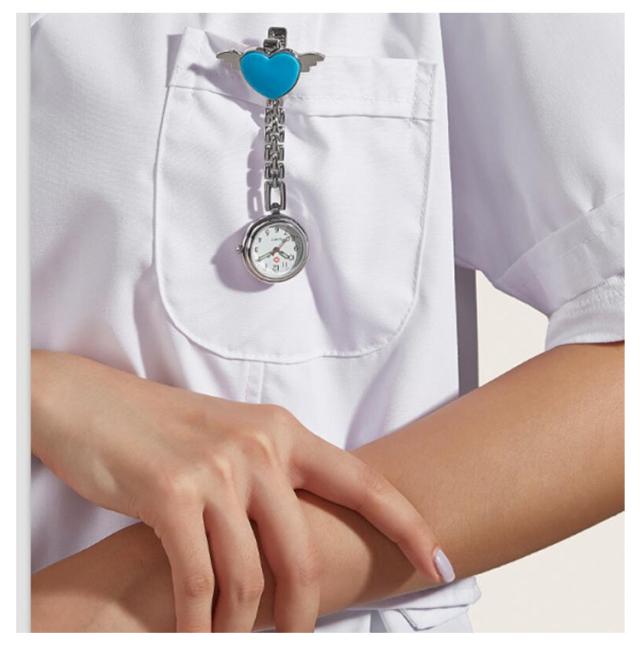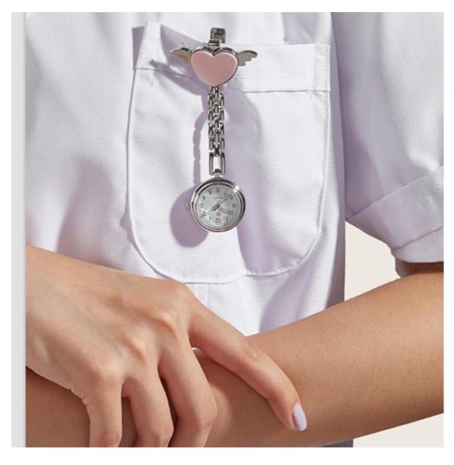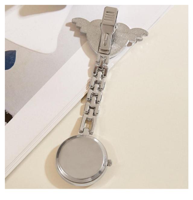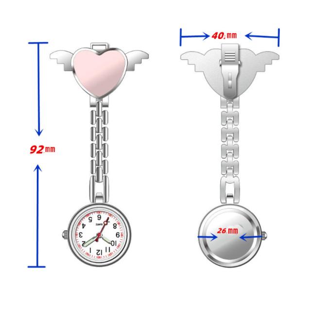 ポケットウォッチ 天使ハート ナースウォッチ 時計 懐中時計 逆さ文字盤 クリップ式 夜光効果 かわいい レディース ナース用 学生用 ウォッチ 軽量 おしゃれ コンパクト