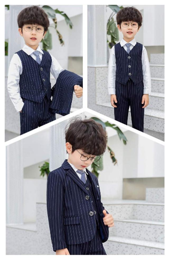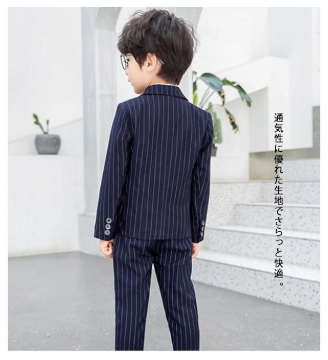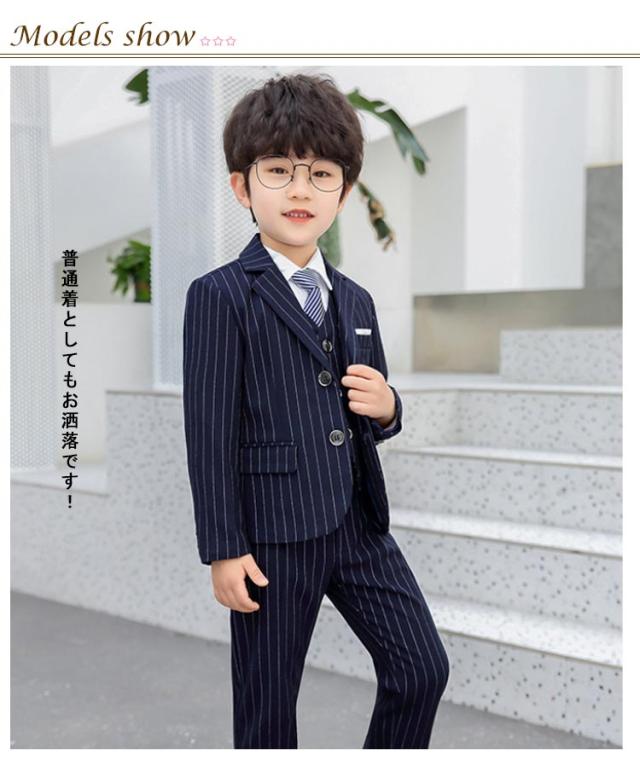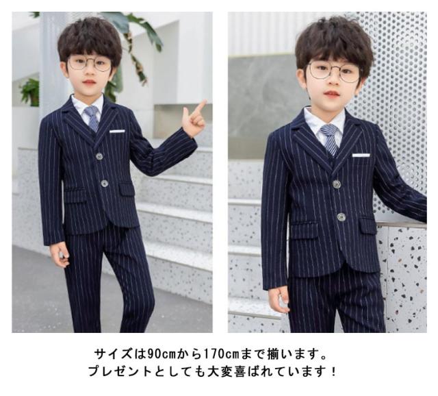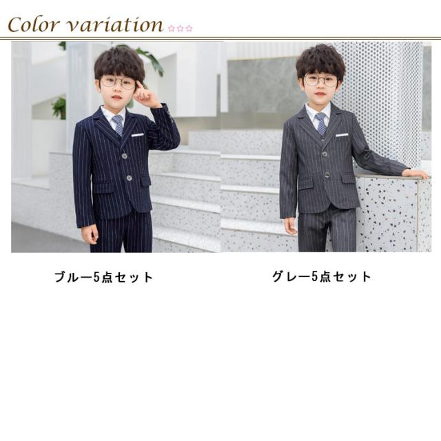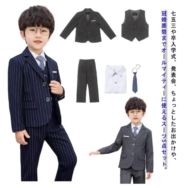 男の子スーツ 5点セット 子供スーツ ストライプ柄 スーツ フォーマルスーツ 入学式 入園式 演奏会 結婚式 ジュニア キッズ お受験 90cm 110cm 110cm 120cm 130cm 140cm 150cm 160cm 170cm