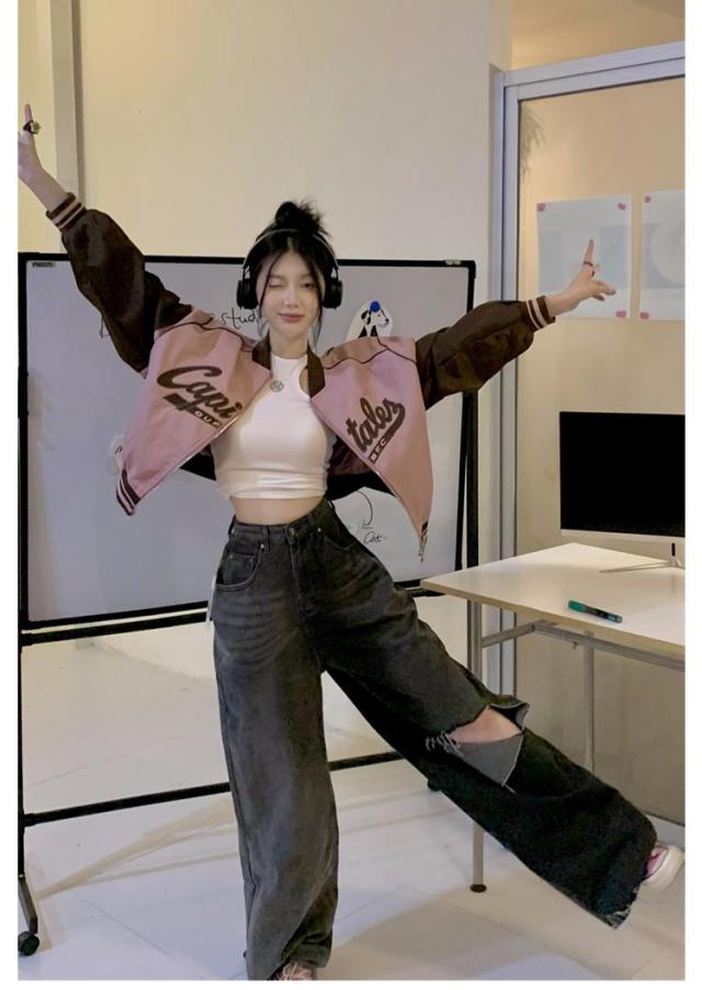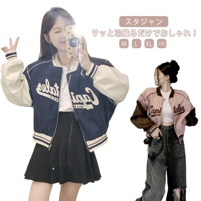 スタジャン スウェット レディース ライトアウター ブルゾン ジャケット 刺繍 ロゴ バイカラー ゆったり スタジアムジャンパー 韓国ファッション スカジャン ジャンパー ブルゾン オーバーサイズ 長袖 フリーサイズ 春