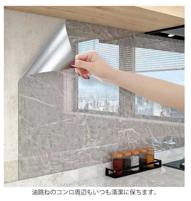 キッチンシート 大理石 壁紙 のり付き 耐熱 防水 カッティングシート 補修 おしゃれ 裏面アルミ はがせる リメイクシート 油汚れ ステッカー 壁 DIY 台所 新生活 引っ越し リフォーム インテリアシート