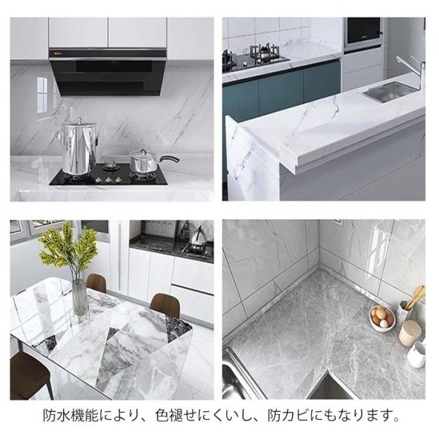 | ・人気の大理石♪貼るだけ簡単におしゃれにイメージチェンジできます。 ・光沢があってつるつるしており、大理石の立体感が溢れる仕上がり! ・耐熱性にすぐれているので、火を使うコンロまわりでも安心して使用することができます。 ・また耐水性もあり、水回りも安心です。 ・油跳ねのコンロ周辺もいつも清潔に保ちます。 ・裏面アルミ加工の粘着シートで糊付け要らず。 ・防水機能により、色褪せにくいし、防カビにもなります。 | |