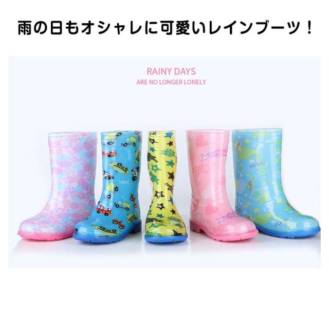 | 内長18-23cm!キッズレインブーツ♪ 雨の日もオシャレに可愛いレインブーツ! 可愛い柄で女の子でも男の子でも似合います♪ お子さまでもサッと履きやすく、動きやすいショート丈。 靴底は滑り止め加工をしており 滑りにくくなっています。 | |