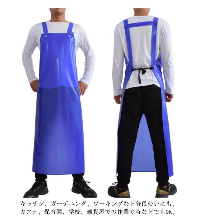 | 水や汚れ、油汚れ対策に!男女兼用の防水エプロンです。 後ろで結ぶタイプのひもの調整で、男性でも女性でも使っていただきやすい大きさです。 PVC素材なので防水効果は抜群で、防油や防汚の機能もあります。 ロングタイプは胸からひざ下までをすっぽり隠してくれ、洋服を汚れからしっかり守ってくれます。 キッチン、ガーデニング、ワーキングなど普段使いにも、カフェ、保育園、学校、雑貨屋での作業の時などでもOK。 | |