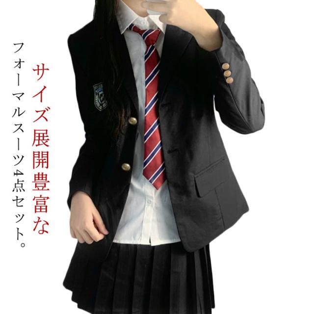 女子高生 制服 学生服 卒業式 入学式 スーツ 4点セット フォーマルスーツ ブレザー 白シャツ ミニスカート ネクタイ セットアップ 女子学生制服 制服 高校生制服 卒園式 発表会 コスプレ