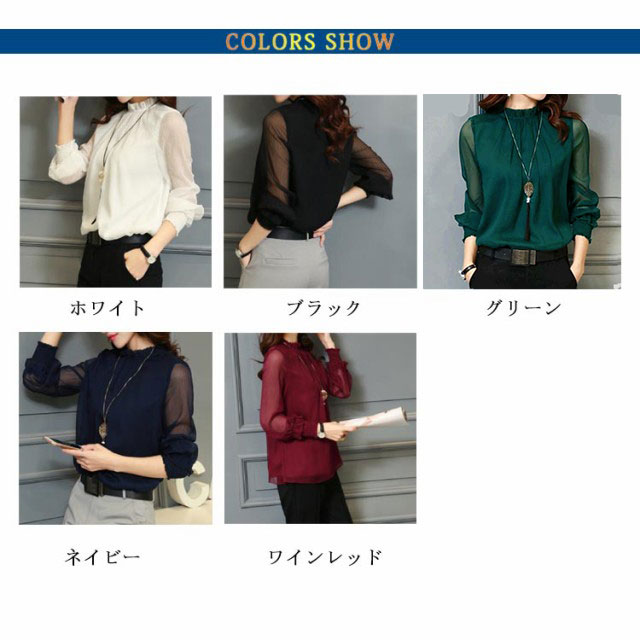 シアートップス ブラウス レディース シアーシャツ シアーブラウス 上品 とろみシャツ シフォン 春秋 春服 シャツ トップス ハイネック 長袖 透け感 きれいめ オフィス カジュアル ゆったり 無地 春 夏 大きいサイズ 大人女性 通勤 ギフト 送料無料