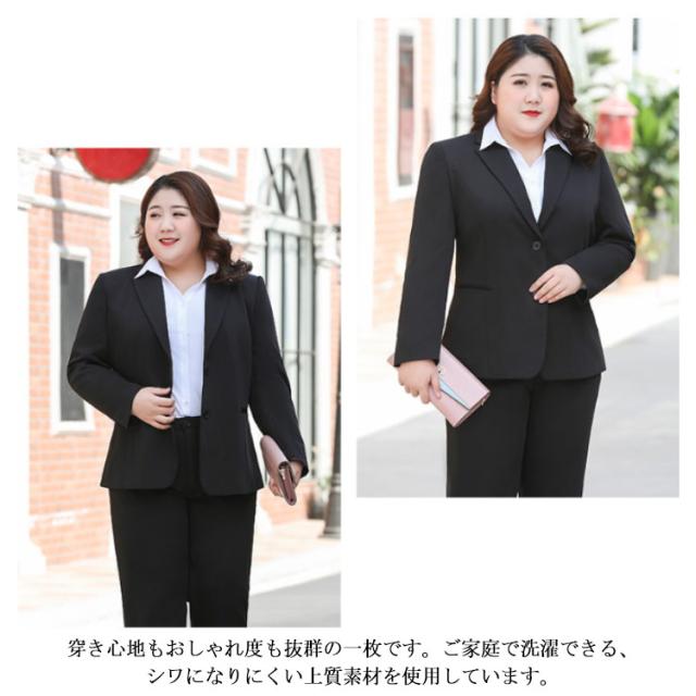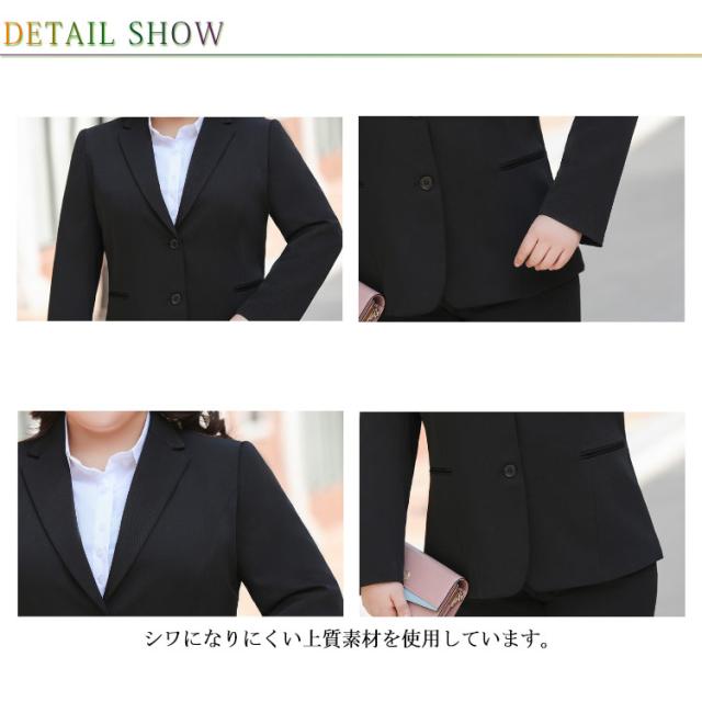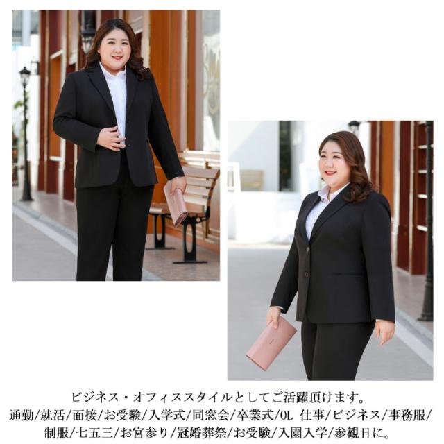 大きいサイズ ビジネススーツ レディース 洗える パンツスーツ ストレッチ セットアップ 通勤 リクルート 就活 OL オフィススーツ 事務服 ビジネス リクルートスーツ ジャケット ズボン 2点 転職 結婚式 面接 卒業式 フォーマル 黒 ママスーツ ブラック 春 夏 秋