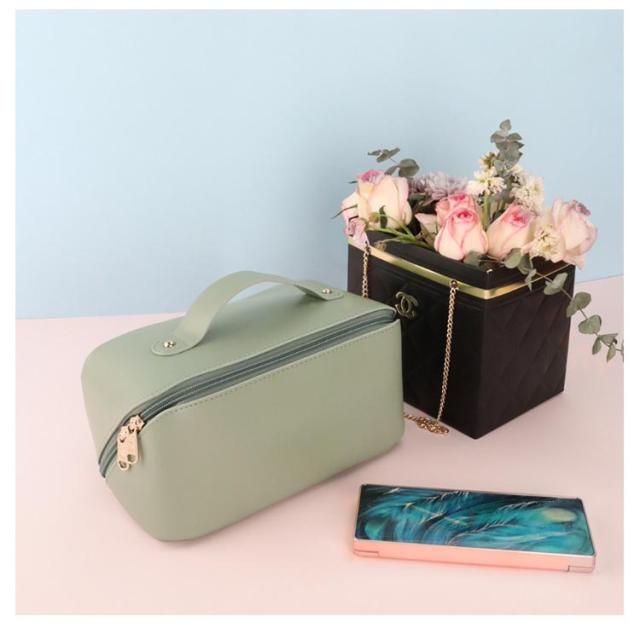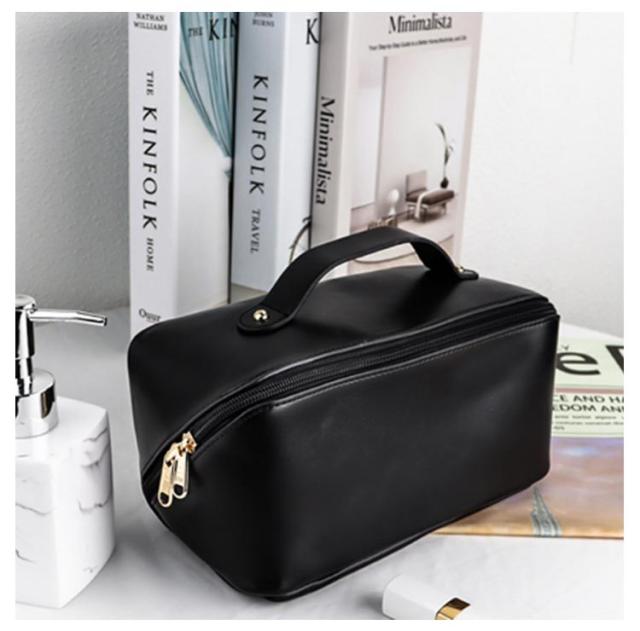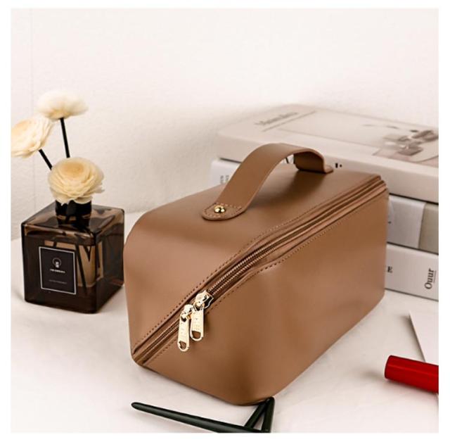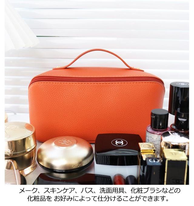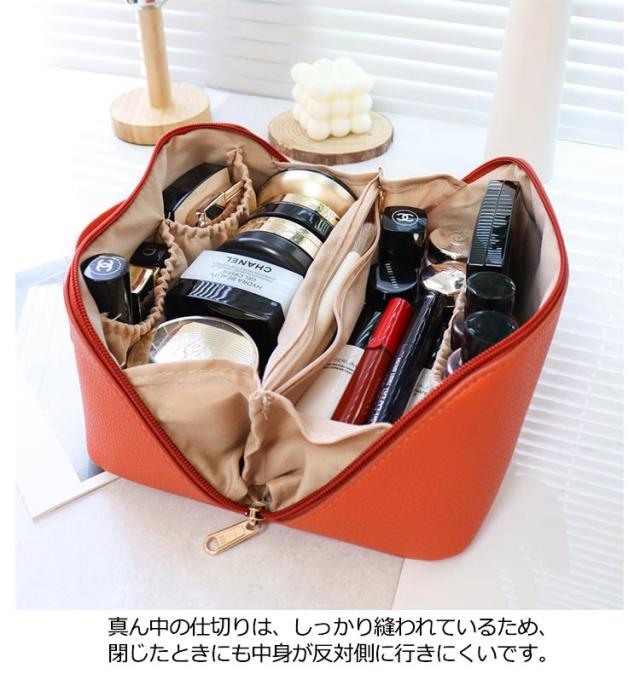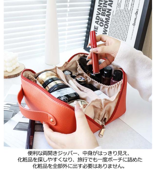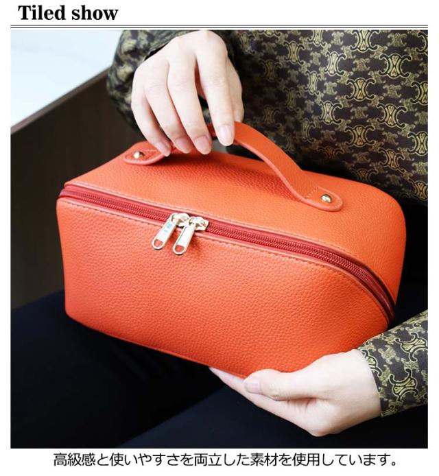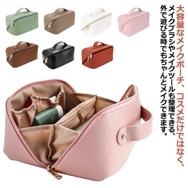 化粧ポーチ メイクポーチ 大容量 大きめ コスメポーチ トラベルポーチ 化粧バッグ ハンドル付き 大きめ 自立 仕切り付き ポケット付き 旅行ポーチ 多機能 コンパクト 収納 整理 持ち運び 出張 旅行 シンプル レザー コスメ おしゃれ 小物入れ 仕切り 防水 韓国風