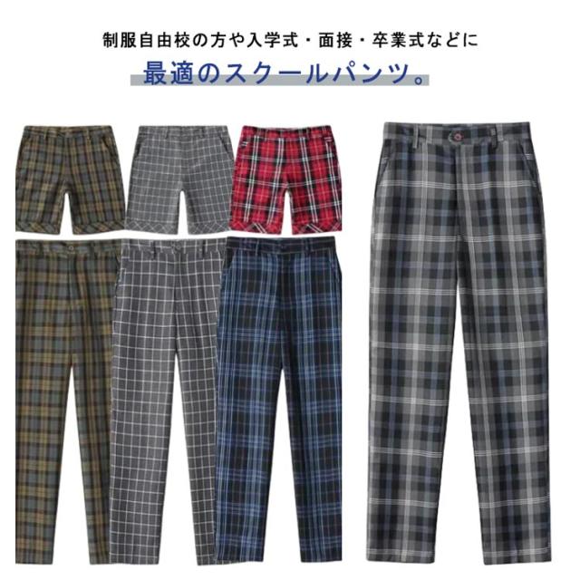 ロングパンツ 男子 高校生 制服 ズボン スラックス チェック スクール パンツ ハーフパンツ ショートパンツ 通学 学生 学生服 スクール パンツ キッズ ジュニア 子供 服 男の子 子供服 子ども服 男子 中学生 入学 卒業 送料無料 XS S M L XL 2XL 3XL 4XL