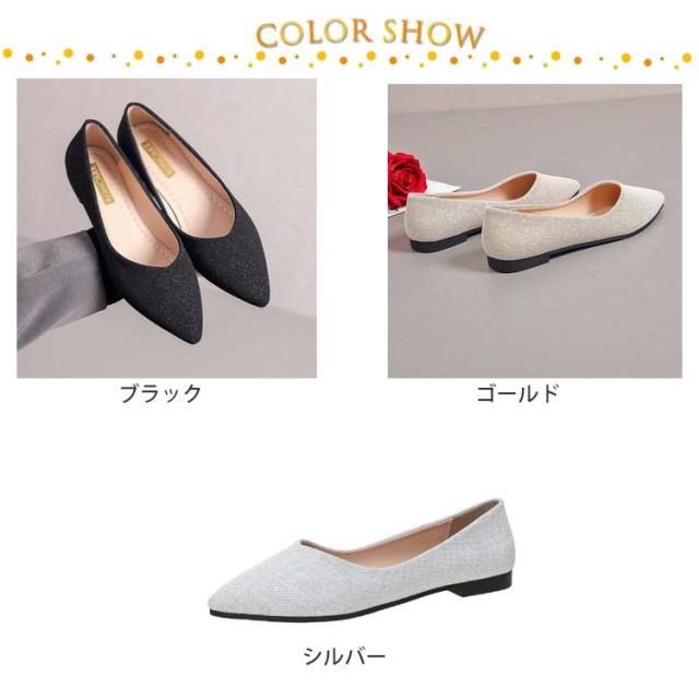 ブライダルシューズ ローヒール キラキラ ウェディングシューズ パンプス ポインテッドトゥ ゴールド シルバー グリッター ブラック 黒 パーティー 靴 シューズ かわいい フラット ぺたんこ ウェディング 大きい サイズ 小さい 結婚式 レディース