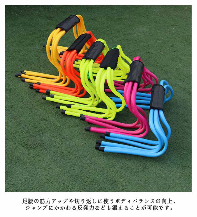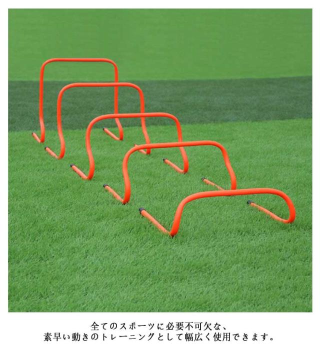 | サッカー、フットサル、陸上、野球、バスケ、テニス等、あらゆるスポーツでの俊敏性・反射神経を高める高さ15cmトレーニング用ハードル10本セット! 足腰の筋力アップや切り返しに使うボディバランスの向上、ジャンプにかかわる反発力なども鍛えることが可能です。 ABS素材は熱や摩耗に強いのがポイントです。 全てのスポーツに必要不可欠な、素早い動きのトレーニングとして幅広く使用できます。 | |