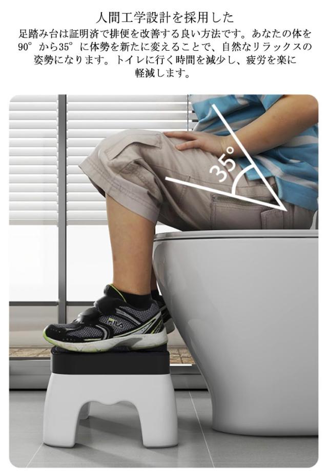 | お子様から大人まで使えます。大人の方の便秘解消はもちろん、小さなお子様がいるご家庭では、大人用トイレへの移行の際の踏み台としてもお使い頂けます。 女性だけでなく、男性もお使い頂けます。 頑丈な造りと軽量設計を両立しています。 人間工学設計を採用した足踏み台は証明済で排便を改善する良い方法です。あなたの体を90°から35°に体勢を新たに変えることで、自然なリラックスの姿勢になります。トイレに行く時間を減少し、疲労を楽に軽減します。 | |