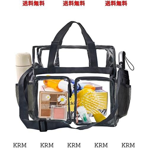 Enkrio クリアバッグ ビニールバッグ 透明 PVC素材 大容量 防水 透明バッグ プールバック ビーチバッグ レディース (黒)