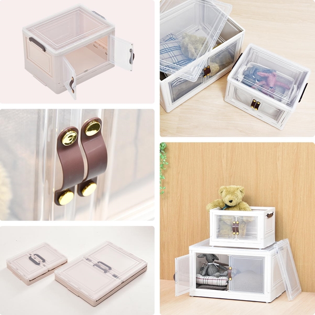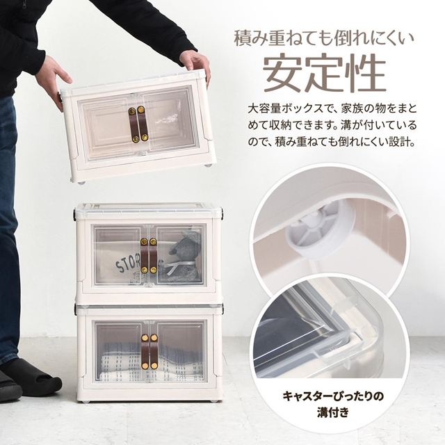積んでも取り出せる前扉付き 収納ボックス 小 【送料無料】 コンテナボックス プラスチック ふた付き スタッキング 積み重ね キャスター付き 折りたたみ 透明 コンパクト カラーボックス