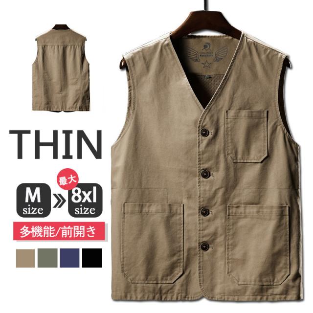 ベスト メンズ ジレ 夏用 裏メッシュ カジュアル 前開き 大きいサイズ シニア サマーベスト 釣り カメラマン キャンプ ミリタリー 撮影用 薄手