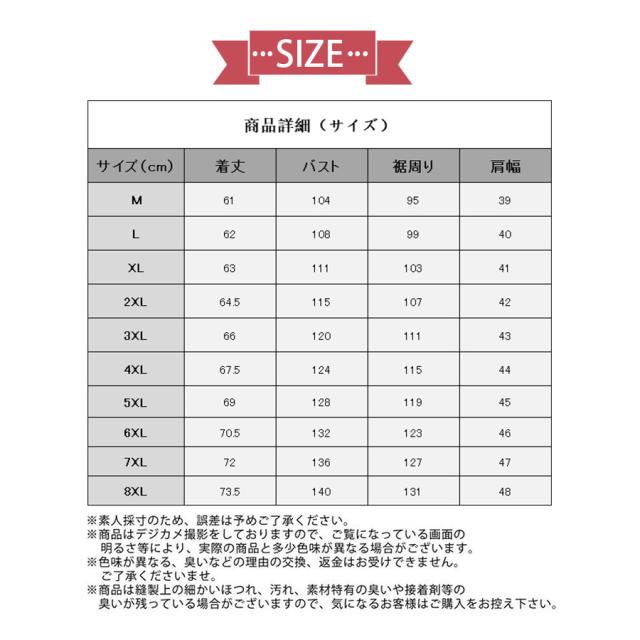 サイズ:/M/L/XL/2XL/3XL/4XL/5XL/6XL/7XL/8XL