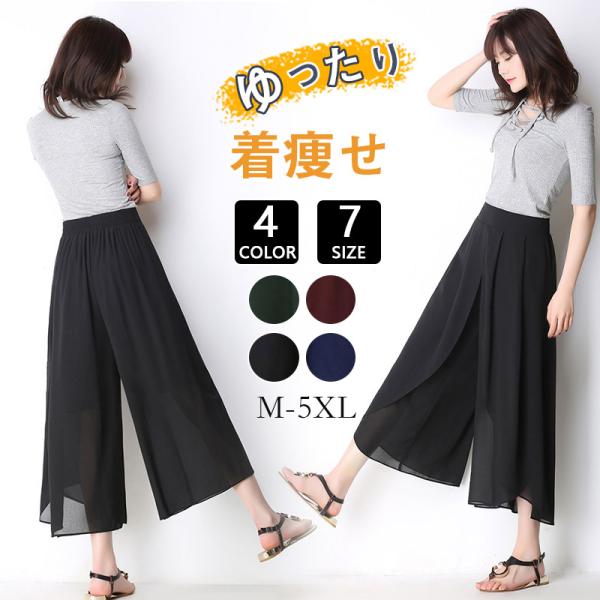 シフォンプリーツスカーチョ ワイドパンツ ボトムスシフォン プリーツパンツ レディース 大きいサイズ 快適通気 レディース 大人 春夏 トレンド バーゲン ランキング
