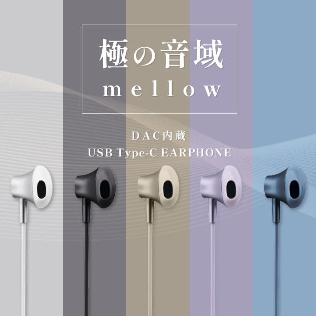 イヤフォン ボリューム マイク付 極の音域 mellow USB Type-C イヤホン インナーイヤー型 マイク付リモコン搭載 DAC内蔵 ホワイト ブラック ライトベージュ ライラック ネイビー メール便送料無料