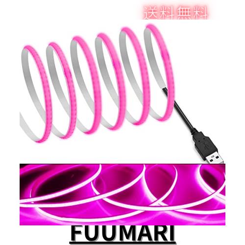 ◆商品名:【RYE】 COB テープライトLEDストリップライトフレキシブル 高密度 幅5mm 隠れたLEDテープライト1m 320LEDs/m ピンク DC5V 180°発光CRI>
