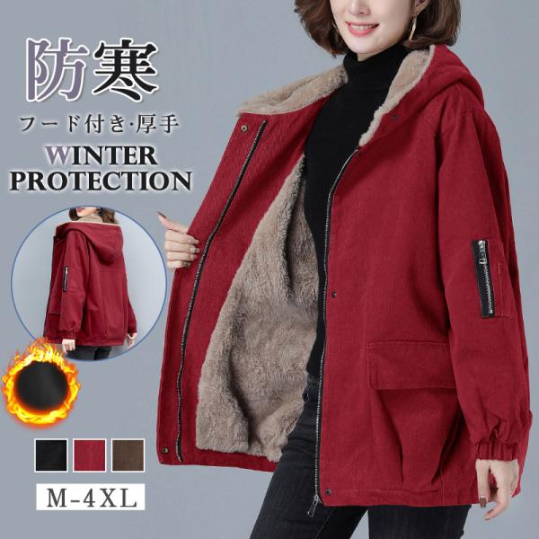 中綿コート レディース ジップアップ 秋冬アウター フード付き 裏起毛 韓国風 中綿ジャケット 厚手 防風 防寒 あったか おしゃれ シンプル 秋冬服