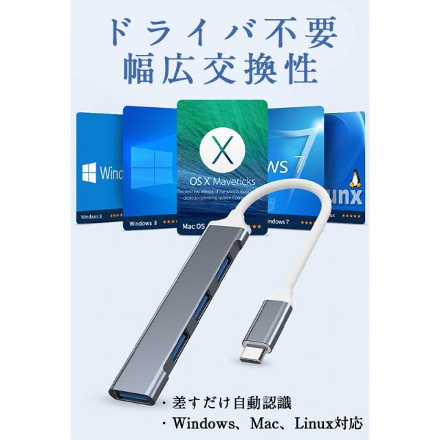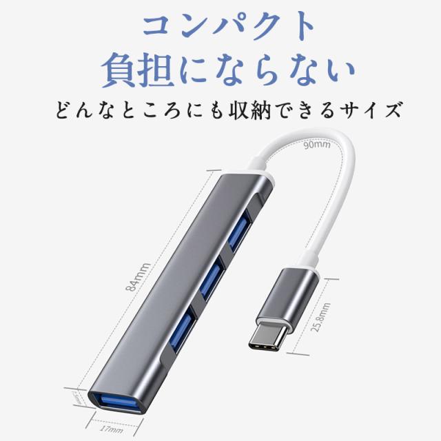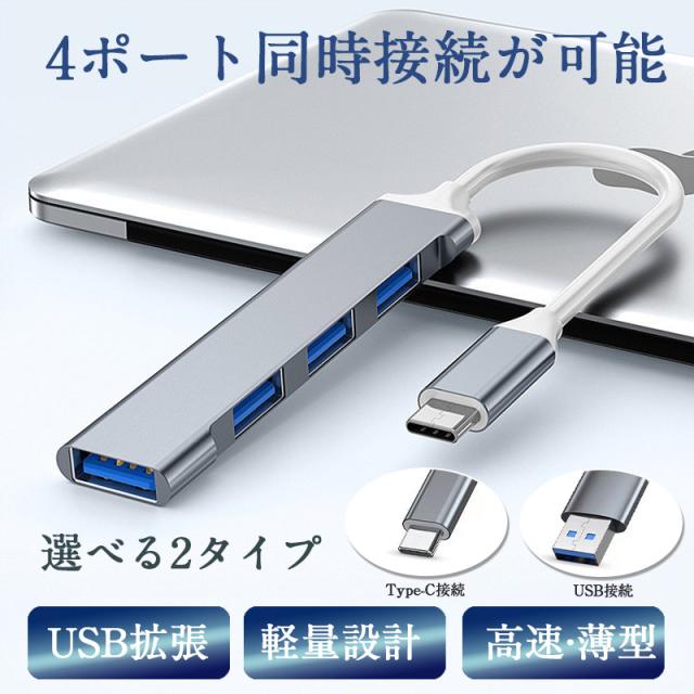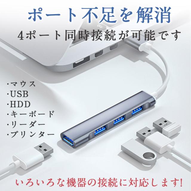 ★限定クーポン★USBハブ 3.0 4ポート USB拡張 薄型 軽量設計 usbポート type-c 接続 コンパクト 4in1 高速 Macbook Windows