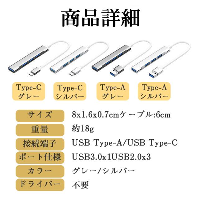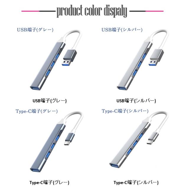 カラー:/USB端子(グレー)/USB端子(シルバー)/Type-C端子(グレー)/Type-C端子(シルバー)/