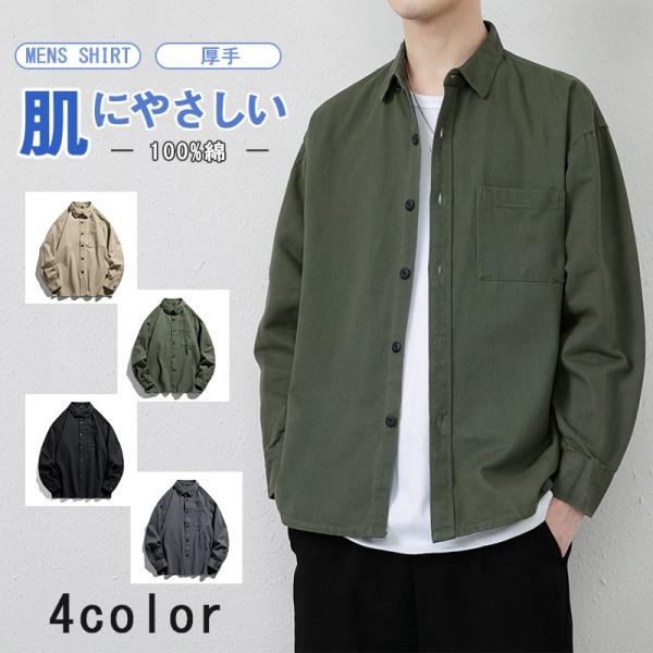 【期間限定200円OFF!】シャツ メンズ 長袖 アウター ジャケットシャツ 開襟シャツ おしゃれ アメカジ メンズシャツ 厚手 春秋冬